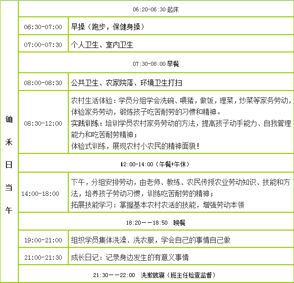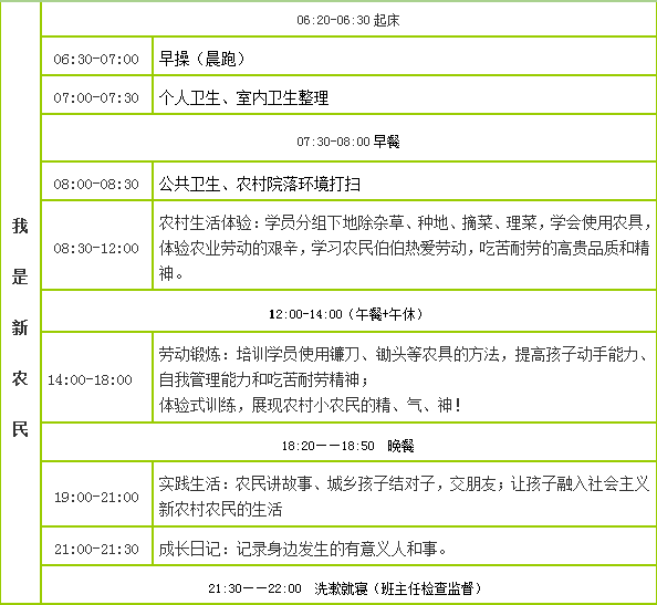 乡村体验训练营,我们带领孩子们一起去到农村,体验农村生活,参加农业劳动,进行农村社会实践活动,通过“体验式的劳动、活动、游戏”的过程,从而达到激发孩子成长动力,健康快乐成长的目的;让孩子深入农村,参加农村劳动,感受农业劳动的艰苦辛劳,培养孩子养成热爱劳动,不怕苦不怕累的吃苦耐劳精神,以人为本,快乐体验;优化情感,注重效果;提升素质,激发潜力!